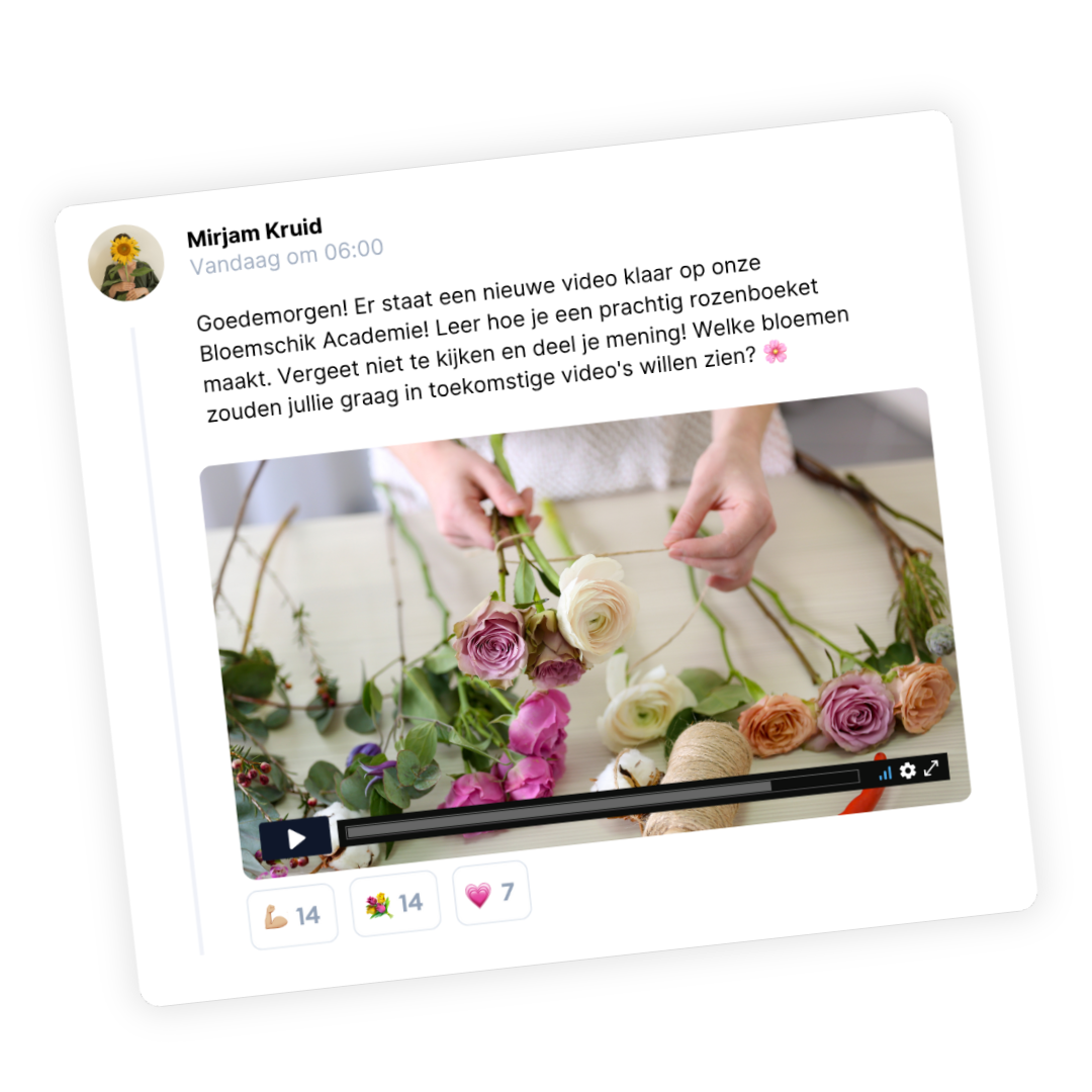 In deze besloten community krijg je inspiratie, feedback, doorbraken én support van gelijkgestemden én van ons team.