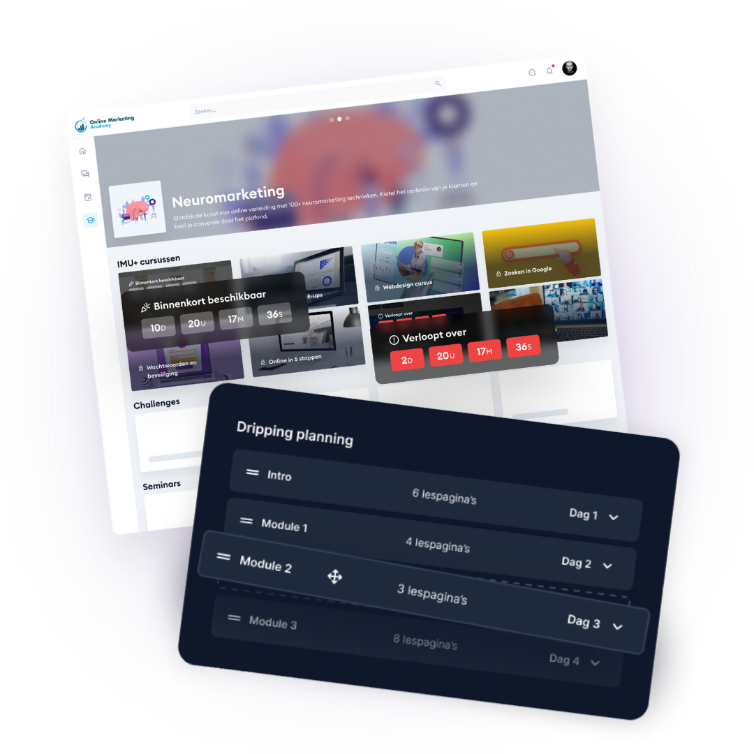 Geef je content gefaseerd vrij, zodat leden niet alles tegelijk zien. Je kunt het verloop volledig automatiseren en personaliseren én een traject met vaste startdatum draaien. Jij bepaalt wanneer toegang start en verloopt.