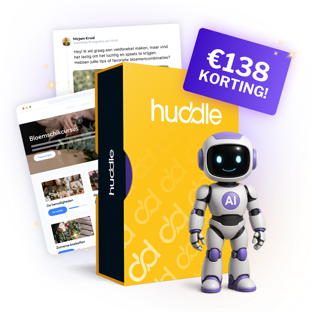 Of je nu een yoga-instructeur, businesscoach, financieel expert of kunstenaar bent, Huddle maakt het gemakkelijk om je passie om te zetten in een online programma dat verkoopt, met een AI Coach die jouw kennis 24/7 schaalbaar maakt.