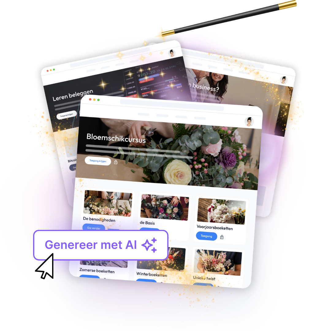 Zet supersnel met A.I. de mooiste e-learning omgeving online voor online cursussen, coaching en lidmaatschappen die je leden altijd en overal kunnen volgen.